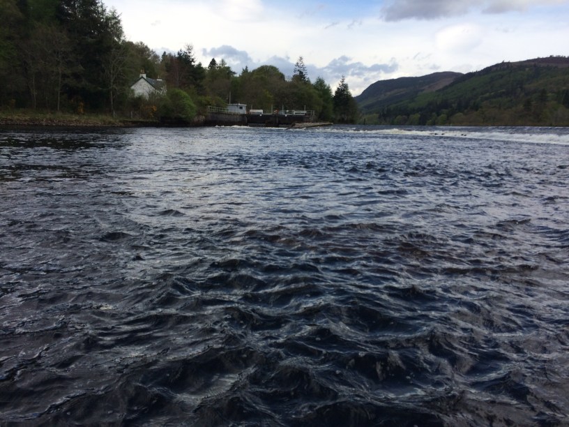 DOCHFOUR . A long awaited chance to fish Dochfour (River Ness) finally arrived on Friday 11th May following an earlier reschedule due to illness. Having followed the reports of good catches during past few weeks, including 9 this week, I was up for it. Speaking earlier with the Ghillie Grant Sutherland to confirm arrangements I met up with Grant on Friday morning. With only one other rod booked (4 rod max) and yet to arrive then choice of pools to start was free. Two syndicate rods were also scheduled to fish but never showed. Having tackled up both fly and spinning rod we headed along the river having opted to start at the Weir Pool ( image below).