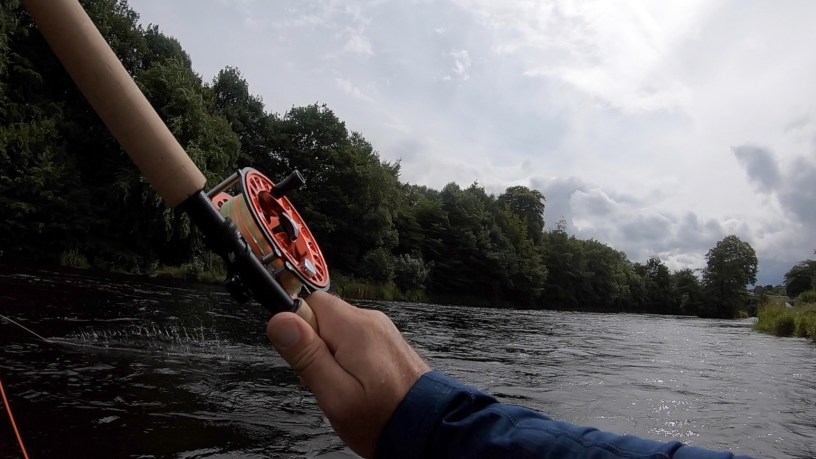 Rumour had it that the barrier gates were to be opened on Tuesday and sure enough I got a message via Facebook that “gates were open now…”. Apparently Loch Lomond levels had reached sufficient height to allow gates to be lifted. So given the choice was either home chores or fishing then within an hour I was parked at Bonhill Bridge and setting up. Noticed from water guage that water was still rising and coloured with lots of debris being washed downstream. Deciding that eventually water would settle and clear If ever fish would be encouraged to run then it was today! High tide was not until around 8:30pm however undeterred I started at The Bonhill Pool with a slow sink tip and a size 9 cascade. Fished slowly down the pool, the water was still murky and lots of weed, branches and rubbish coming downstream being collected it seemed by both my fly and my landing net behind me. Completing the pool and after a break for coffee and catch-up with other anglers I headed for The Piles having changed fly for one of John Richardson’s hi viz cascade doubles.