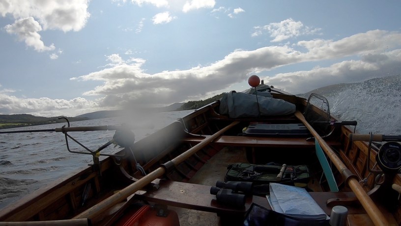 Finally deciding to call it a day I headed across the loch from Inchmurrin to Boturich wanting to fish the east shore homewards. As I crossed I reflected how quickly the scenes and conditions can change from flat calm this morning to a bow slapping roll.