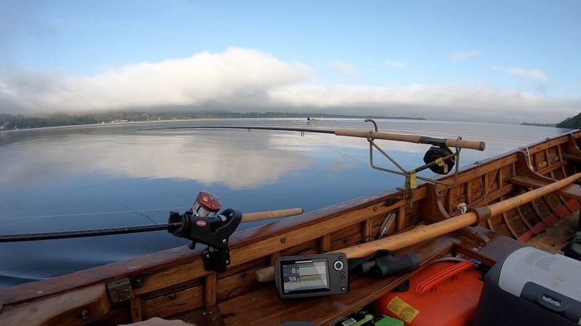 Carefully working the shore as tight as we dared we continued north weaving in and out of each bay and inlet in turn then around “Ross Isles” without any further contact. Breaking for lunch just below Rowardennan for a stretch of legs, a “fry up” and an adjustment of rods and gear as well a blether. Deciding upon a route home we were soon off again, sailing south back down the east shore again before crossing amongst the islands of Inchconnachan and Inchtavannach and then down the west shore. I was not familiar with this route so appreciated Michael sharing his experience of this part of the loch.