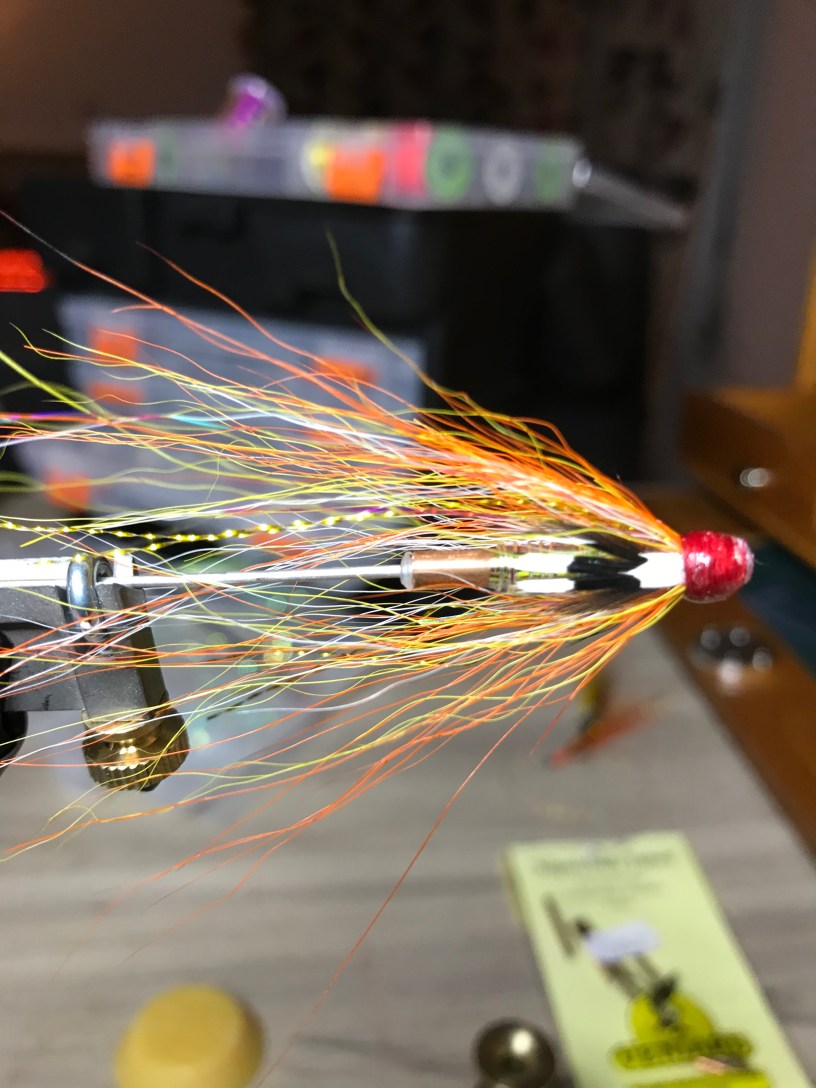 First attempt at this fly tying business. A 1′ copper White Willie Gun. Head not great but progress. Only took about an hour lol. Whipping tool still a pain to get working. How better to spend those long dark nights?