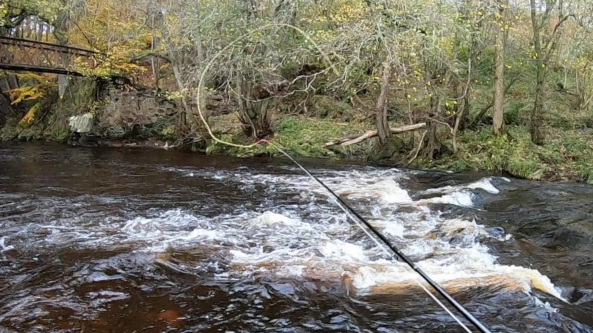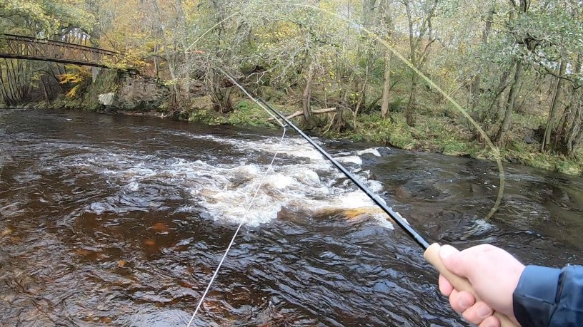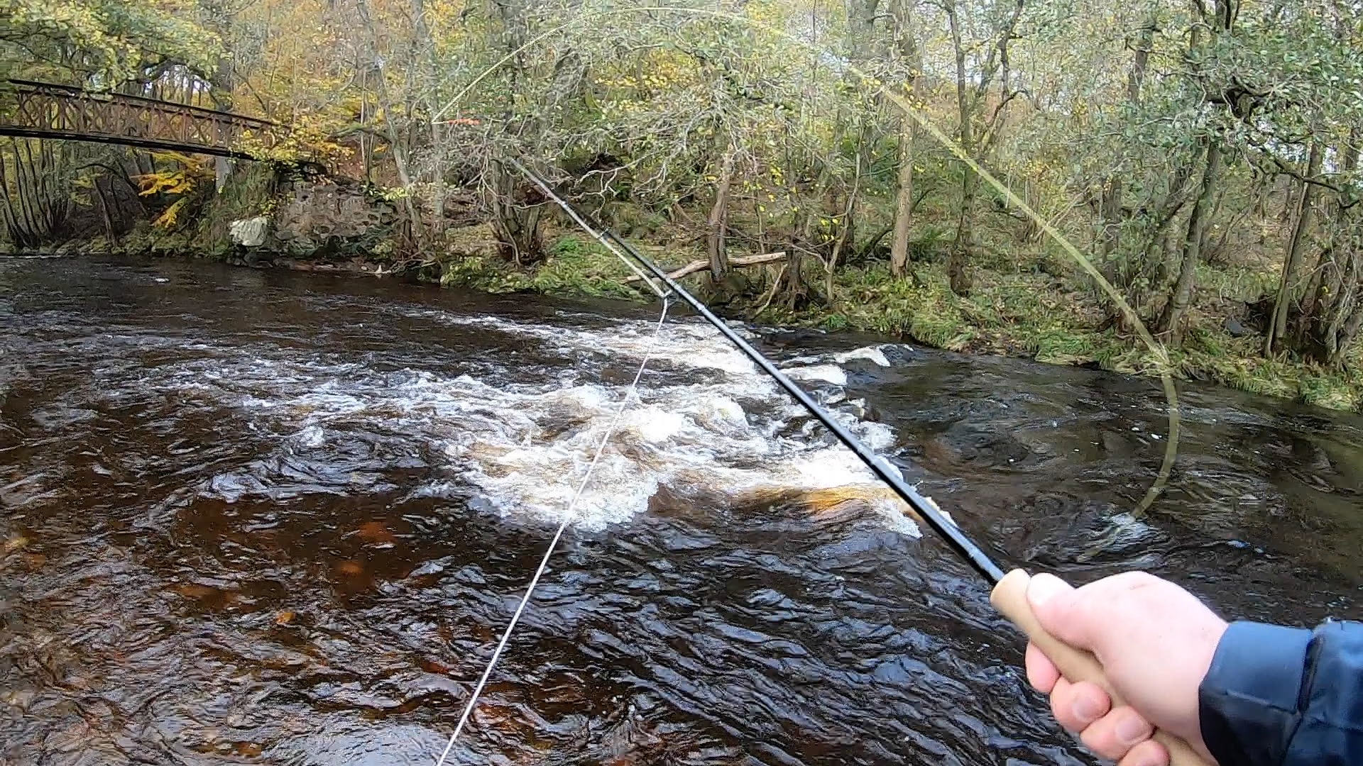 Having almost reached the very tail of this pool I opted to take a smoke break and have seat. As I sat I watched this same fish as if in defiance continuing to show itself as if to say I’m still here. After finishing my cigarette and opting for a change of fly I walked a few yards back upstream determined to give this fish one last go. The fly had hardly hit the water when all went tight and I held my breath as the fish initially opted for the far bank then downstream towards a weir, fast water and eventually a bridge. Rightly or wrongly I tried to slow or prevent this run whereupon the heavy bend in rod suddenly disappeared as the fish and hook parted company! Cursing heavily (edited from the video) and retrieving my rod from the water below me I thought what an idiot why didn’t you simply let it run and deal with the fast water!