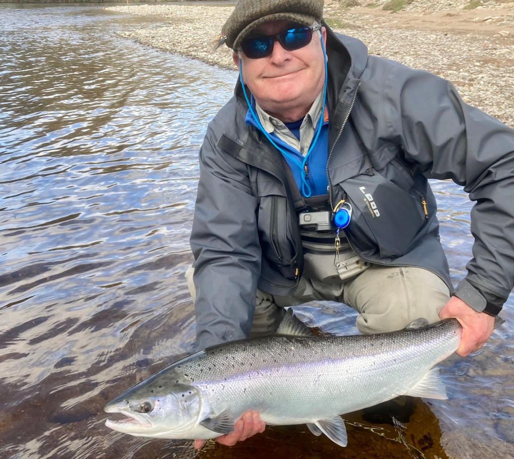 After recovering from the excitement, just ten minutes or so later I was in again on the same pool and the same fly – a 3/4″ copper Willie Gun! This was another beautiful fresh fish of around 8lb which once again was safely returned.